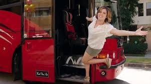 So, Rebecca shows up to pick up the gang in this huge tour bus. Poor Rebecca, she always seems to go over the top.