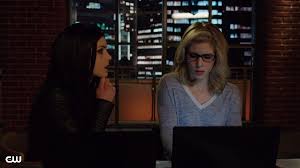 Felicity begins hallucinating (due to her medication) about the version of herself from five years ago when she was a goth computer hacker. Viewers were introduced to this Felicity in “The Origins of Felicity Smoak” last season. This goth Felicity basically taunts our Felicity about how she is not the woman she was and that she will lose Oliver the same way she lost the use of her legs and that the best thing would be for her to return to the computer hacker she used to be.
