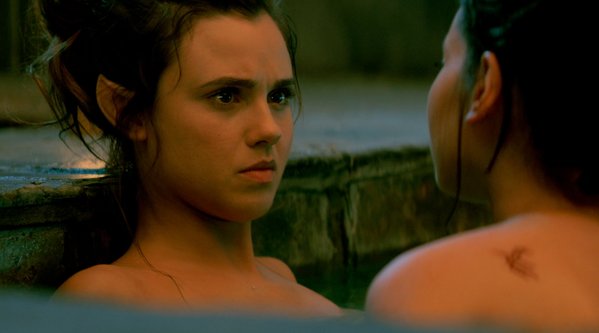 Amberle takes a nice warm bath in the most beautiful tub (?) I’ve ever seen. She is interrupted by Eretria, who joins her in the bath. Eretria hits on the Princess, which was priceless. The look on Amberle’s face was hilarious.