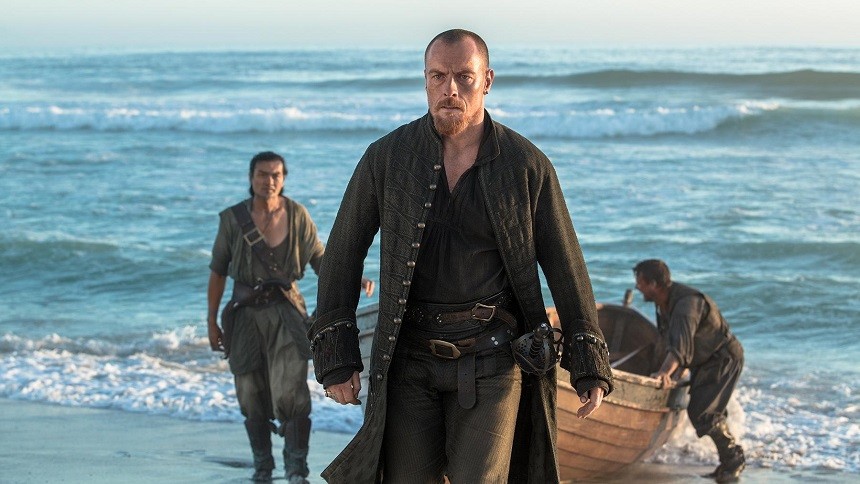 Finally we have where all the action in this episode was, with Flint, of course. He and some of the island inhabitants and the rest of the crew are back out to sea and they stop by when they see Blackbeard and his gang. Flint is determined to have Vane back because that was their partnership and he needs him to help rally the men to fight England. Blackbeard of course declines and it ends up with them going to duel. Pistols and then swords.