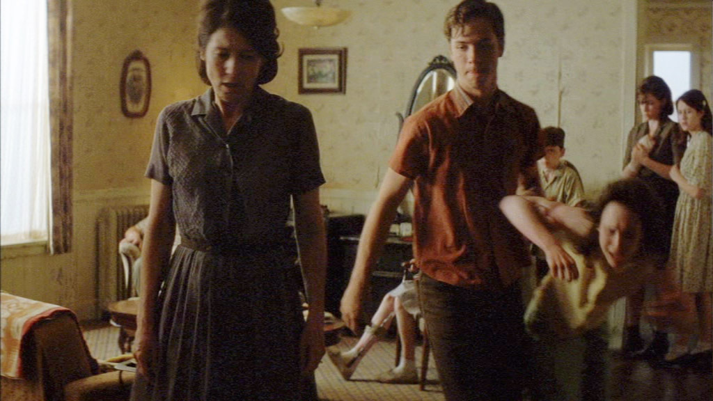 When the “rumors” continue about Paula, Gertrude takes matters into her own hands. Calling a family meeting, Gertrude makes Sylvia do an awful thing, and I’m very sorry, you’ll have to watch it yourself to know, I cannot repeat it. When another daughter and her boyfriend walk in on what’s happening, Gertrude tells them Sylvia must be punished, she is trash, dirty, a slut, and has the boyfriend throw Sylvia in the basement. i