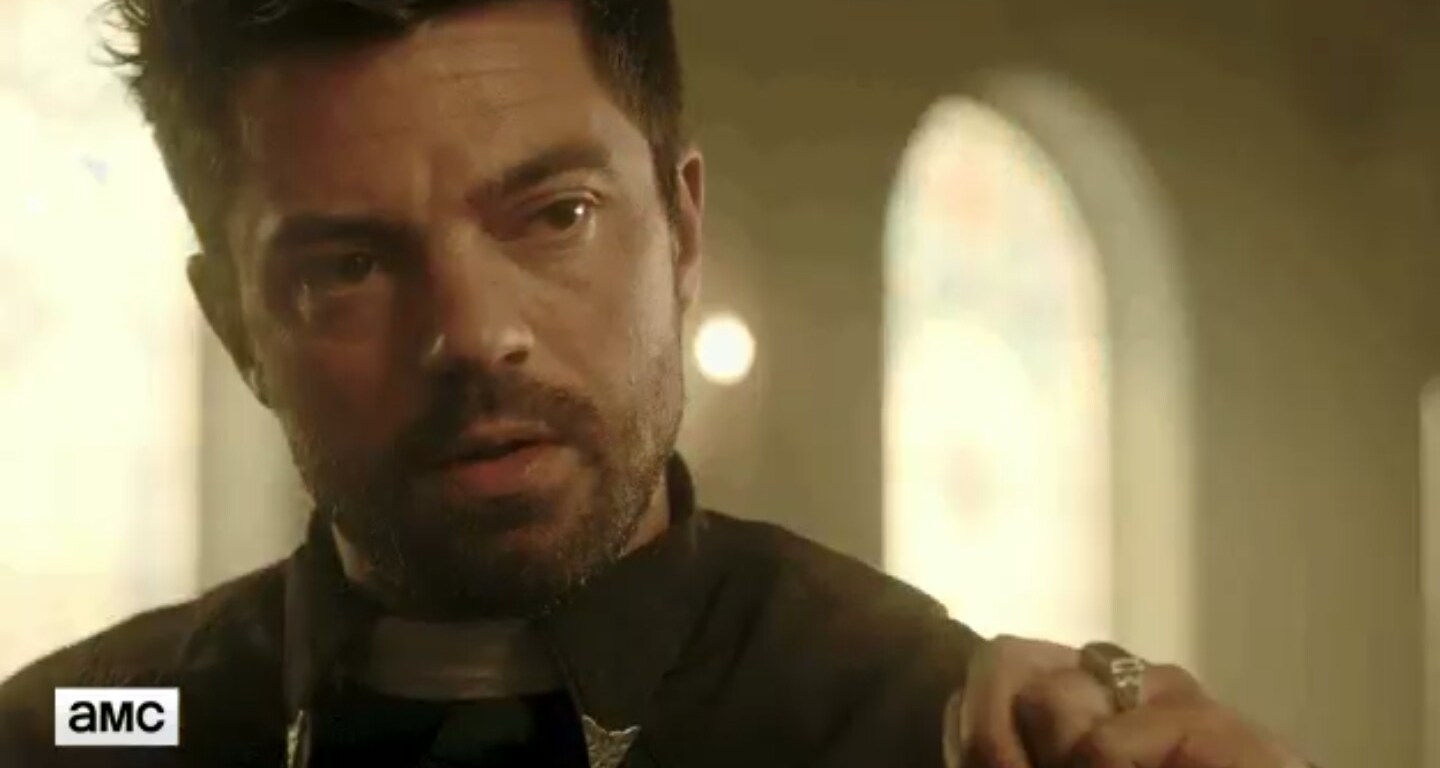 This week brought us a brand new episode of Preacher after the original premiere of the pilot two weeks ago. We started back in the year 1881 with settlers making their way through the dessert wilderness. A man on a horse sets out on his journey and meets a family making their way by wagon. After listening to a bit of a rant about the evils of civilization around the campfire we are shown in the cold light of morning a tree full of hanging corpses. We are brought into focus on one that has been scalped. We then are pulled back to see a sign marked The Town of Ratwater as the man on a horse rides by. Then it’s back to the present and the rest of this recap.