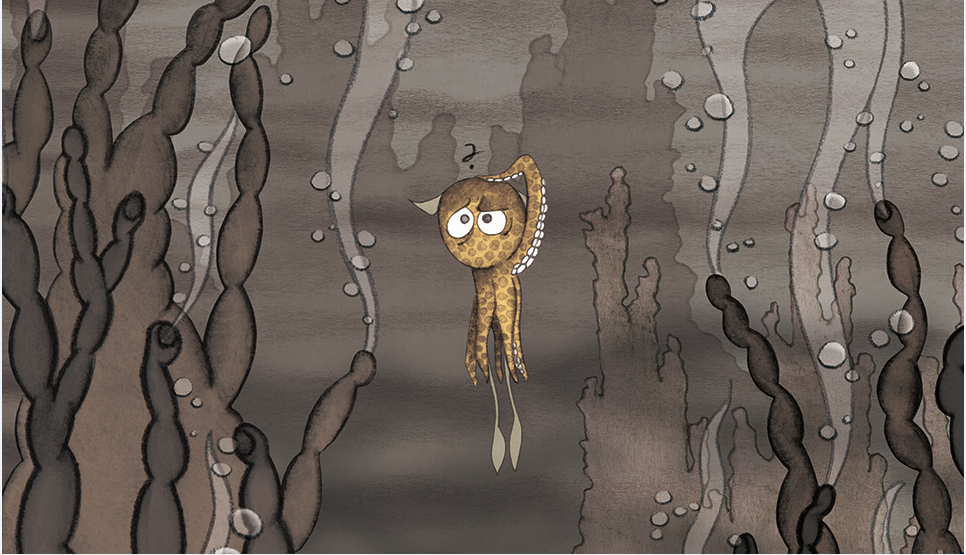 In the case of Little Moon, I came across a strange creature at the Academy, which was a type of cuttlefish.  They are fascinating creatures, but as a children’s book character, they’re kind of terrifying.  I researched to find a very similar animal – the Hawaiian Bobtail Squid – that has the same abilities but is also adorable.