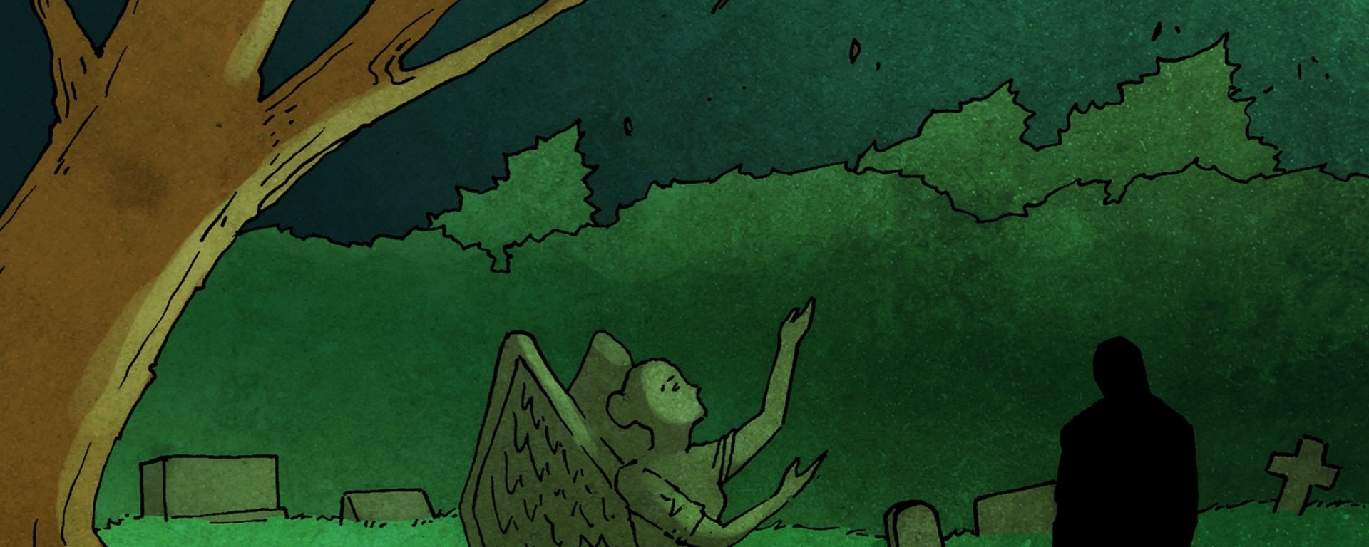 The Shepherd opens with an explanation of where this comic came from which you absolutely need to read. Andrea Lorenzo Molinari, a Ph.D . holding theologian, came upon this story in a nightmare and with the urging of his son he decided to turn what terrified him into a heart-wrenching story of lose and redemption. In this comic Lawrence Miller, a theologian inspired by the author’s own life, is stunned one night to learn that his son Val has overdosed at a party. Over the course of a year he grows more and more distant from his family, then after constantly feeling that his son has not passed over, Lawrence chooses to kill himself so that he can search for his son. When he enters what we learn is called The Seam, Lawrence finds himself reuniting with his father. There is no sign of Val and Lawrence decides that he will not cross over until he can find him. He decides that not only will he search for his son, but he will also seek revenge upon the men who provided him with drugs. His father gifts him with the Staff of Truth and when he rests near the gravestone that he now shares with his son, Lawrence also gains a deadly canine companion, Legio. The two hunt down the men Lawrence feels should be punished, but his story is so much more complex than a mere tale of vengeance.