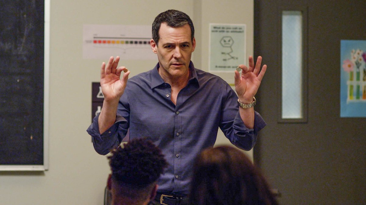 After Madison leaves, Amanda talks with Georgia (Charmin Lee) about whether Amanda should go out with Jamestown professor Dr. Price (Robert Pralgo). Georgia encourages the date, but Amanda isn’t sure as it hasn’t been long since the death of her husband and she’s not ready to start dating again. Meanwhile, Preston (Bret Green) is at the University Grill with Veronica (Erica Marie Sanchez) and Noah (Harrison Knight) and is telling them about his mom dating Dr. Price. Noah has Dr. Price for Chemistry and likes him, Price’s class is the only one he doesn’t fall asleep in. Later that day, Noah invites Preston and Veronica to Dr. Price’s Chemistry class. The professor is discussing how pennies used to be made from copper. Preston criticizes Dr. Price’s lame jokes and his pleated pants; it’s obvious he’s not comfortable with his mother dating again.