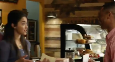 Noah (Harrison Knight) needs a job and asks Amy (Yasmine Al-Bustami) to hire him at The University Grind. She does and he starts working at the coffee bar. Noah’s artistic talent allows him to create themed cappuccinos. However, he quits when Ryan confuses his eagle masterpiece with a fish and Amy backs Ryan, saying “The customer is always right.” Later, Noah returns to his job when Amy praises his cappuccino art and promises to support his endeavors.