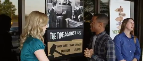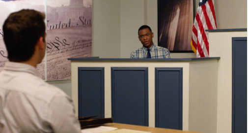 It’s the moment that students studying pre law at Jamestown University has been waiting for: mock trial time. The mock case is one where an employee is bring a suit against the CEO of a company where he was fired after being bullied by his manager. Stacey Pierce (Gabby Borders) is assigned to represent the defendant, while Preston (Bret Green) will act as attorney for the CEO. Preston isn’t happy about having to defend someone accused of bullying but his professor reminds that everyone is entitled to fair representation under the law.