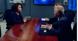 Amanda (Jessica Lundy) and Mitch question a person of interest named Brian Boyd (Tyler Cravens) in a case of identity theft they are pursuing. Boyd insists that he has nothing to do with it and as the postal inspectors don’t have sufficient evidence, they can’t bring him in.