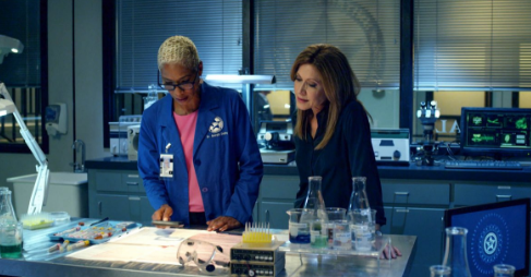 Amanda meets with her team regarding the fake invoice from Trident.  She then goes into the lab to talk with Georgia. In addition to discussing the case, Amanda and Georgia make a pro/con list for why Amanda should or shouldn’t accept the promotion. Amanda remembers how her late husband Henry was a great person to help her make important decisions because he never told her what to do, but instead gave her sound advice in which to consider her options.