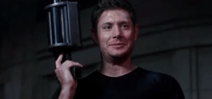 Plan B is to go “old school.” With blueprints in hand, Dean determined that they can break down one of the bunker’s weaker walls. This sequence found the boys pounding the walls with sledge hammers. When sledge hammers proved unsuccessful to the physical structure, Sam and Dean realized that this is the end of the line for them and that they wouldn’t go out in a “blaze of glory, Butch and Sundance style.” These words resonated for Dean and with a slight smile of renewed purpose, the elder Winchester brother executed Plan C: The grenade launcher. I was thrilled for Dean that he final got to use the grenade launcher. Success!