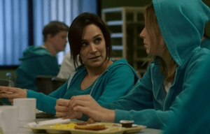 A term of Franky’s parole was that Doyle keep her distance from Pennisi, which shouldn’t be hard to do as why would Franky even want to see the man?  And also, why would Pennisi want to see the woman who had disfigured him?  So imagine Franky’s shock when Mike Pennisi approaches her in the Season 5 premiere episode “Scars” wanting to grab a coffee.  Franky declines his invitation at first, but then against her better judgment, meets with him. Pennisi explains he harbored bitterness against her for a long time but finally made peace and was able to get on with his life. That’s great Mike, enjoy the rest of your life and that should have been the end of it.  But Pennisi began calling Franky asking to see her again. Or even talk with her on the phone sometimes.  When Franky refused, Pennisi began threatening and stalking her.  After a physical altercation in which Franky was able to get away from him, Mike Pennisi was later shot to death and Franky Doyle was arrested for his murder. Viewers later learned the real murderer was prisoner Iman, Mike Pennisi’s girlfriend who was angered by his obsession with Doyle.