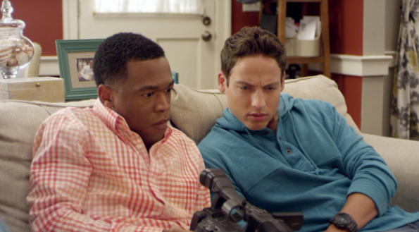 Meanwhile at Jamestown University, Veronica (Erica Sanchez) looks very professional in her power suit, while Noah (Harrison Knight) thinks she looks like a realtor and comments that he’d buy a house from her. Veronica tells Noah and Preston (Bret Green) that she has an audition at WVNB4News for a job as a weather reporter. When Veronica arrives at the audition, she feels overdressed and out of place; the other girls looks as though it is a modeling audition.