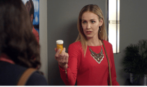 She meets another hopeful Bailey (Kathryn Boyd Brolin), who questions V’s attire. After the audition, Veronica tells Bailey that she (Veronica) got a callback. Bailey offers Veronica some advice: She should consider a wardrobe change when Veronica returns for her callback audition. But that’s not all that Bailey offers. Reaching into her purse, Bailey pulls out a bottle of weight loss pills. She tells Veronica that her (Bailey) boyfriend is a fitness instructor and the pills are perfectly safe. Bailey says “You heard that a camera adds ten pounds, what will happen when three are pointed at you?” Torn, Veronica takes the pills.