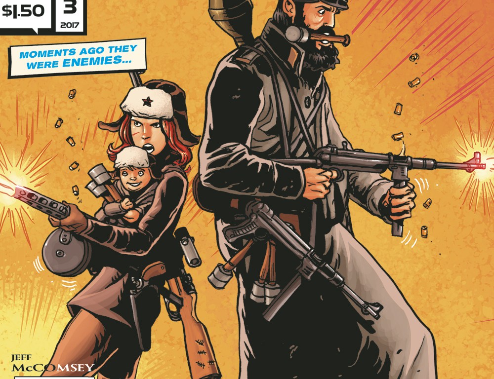 In the thrilling conclusion to Mother Russia, we watch as our title character and her new ally fight their way to safety from the zombies. They need to create a hole within the undead hoard, but it won’t be easy.
