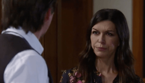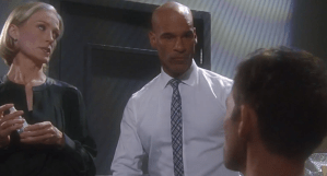 Nina/Valentin/Cassandra. Nina and Valentin are perfect for each other. They’ve both made mistakes, but their love and commitment to their family and marriage is the most important thing in their lives. The old Valentin (James Patrick Stuart) would have lied to Nina (Michelle Stafford) when she questioned his relationship with Cassandra, but not the man he is now. Valentin came clean to Nina about his past with Cassandra. And Nina warned Cassandra that she (Nina) wasn’t someone to be messed with. Neither is Cassandra as Valentin already knew and is rediscovering. When her henchman discovered the bug Finn had hidden in her cellphone, Cassandra immediately accused Valentin of planting the listening device. Even though she now knows Finn did the deed, Cassandra can’t leave any loose ends, which means bye bye Valentin. What a terrible way to spend his first anniversary to Nina! Will Nina learn of her husband’s plight and save Valentin? Stay tuned.