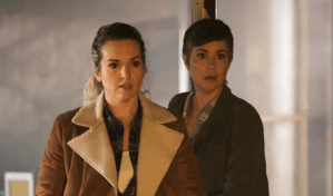 Jody and Donna. Being the parents on a television series used to be limited to giving sage advice and hoping your kid didn’t break curfew or do something illegal. But times…they are a-changing. Today’s screen parental units are in the thick of the action along with their children. Surrogate parents Jody (Kim Rhodes) and Donna (Briana Buckmaster) are sheriffs of Sioux Falls and Stillwater. They were used to dealing with perps threatening the well being of their respective counties. But Jody and Donna probably never imagined they’d have to face creatures with claws and fangs. They’ve adapted pretty well and are capable hunters. Between the two, I have a soft spot for Donna. Though I must confess, it took me awhile to get into the character. Buckmaster is a likable and talented actress, but every time Donna said “Jody-o” or “You betcha,” I cringed. But in “Wayward Sisters,” I felt Donna finally came into her own. During her off-screen time, Donna has become a skilled vampire hunter. It is unclear of how she was able to develop this skill without guidance of other hunters is left to the viewer’s imagination.