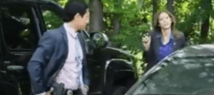 Meanwhile, Amanda meets Inspector Eric Lin from the Philadelphia office. Eric and Amanda head to the forensic lab, and Amanda introduces Georgia (Charmin Lee) to Inspector Lin. Mitch (Terry Serpico) is on team leader training so Eric is assisting in the case which involves collection box break-ins. Georgia shows Eric and Amanda the dents on the mailbox which appears to have been made be a crowbar. Meanwhile, Amanda gets a tip about a man being spotted at the location of the mailbox break-ins. Eric and Amanda head to Alta Vista, MD where they find Tony Belder (Alex Livinalli). And what is in the passenger seat of Belder’s car? A crowbar. The postal inspectors bring Tony Belder in for questioning. Amanda tells him that witnesses can place him at the scene of the collection box break-ins. Belder insists that he is an upstanding citizen. His rap sheet tells a different story says Inspector Lin. Belder smiles and calls his prior arrests ‘misunderstandings.’ This infuriates Inspector Lin but as the postal inspectors can’t hold Tony Belder unless the crowbar found in his car matches the dents on the mailbox, he’s free to go. But Amanda tells him that they’ll (the postal inspectors) will talk with him again. In the hallway, Amanda gives Inspector Lin some sound advice: “You play the suspect, don’t let the suspect play you.”