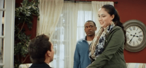 Noah (Harrison Knight) and Veronica (Erica Marie Sanchez) are decorating Jamestown University for Valentine’s Day. Veronica is distracted because she knows that even though they said no gifts, Preston will get her a great present but she has no idea what to get him. When Noah goes to the Wainwright home, he finds Preston looking dapper in a tuxedo. Preston tells Noah that he surprised Veronica with tickets to the opera. Knowing the Veronica has been worrying over what to get Preston, Noah wonders how Veronica will feel about the romantic date. Veronica enters. She’s surprised to see Preston in formal wear. He tries to cue music to come on, but the remote doesn’t work. Preston tells Veronica about their Valentine’s Day evening at the opera. Veronica panics because she knows she didn’t get Preston anything, but lies that she did and left his present at home. Veronica leaves with the pretense that she is going to get Preston’s Valentine’s Day gift.