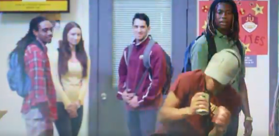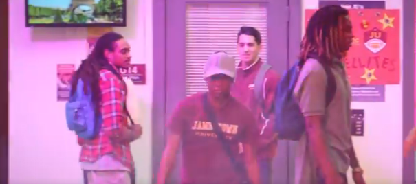 Meanwhile, Jamestown University has made it to the football championship against rivals Livingston Tech. There is a Division Can Food Drive and Jamestown is trailing behind Livington Tech. As the person in charge of the food drive, Veronica is stressed. She also has a big psych paper coming up. But on the bright side, Veronica managed to win two VIP tickets to the big game, but both Noah and Preston want her to take them. She decides that the best way to choose between the two is to pick the one who raises the most cans for the food drive. However, the guys are unaware that they are test subjects for Veronica’s psych competitive spirit paper. She wants to see what brings out their competitive natures. As usual, Preston gives a rousing speech in the hope that people will donate cans. “It’s not just about charity and school spirit,” he says, “It’s about charity and spirit for all humanity.” He is feeling good about himself and the affect he has on the crowd; Preston is confident that it will lead to more donations for the can food drive. “Too bad Noah’s not here to take some notes,” Preston tells Veronica. Just then, lights come on music begins to play. Enter Noah. He starts busting some cool moves to stir up the crowd to get them to donate. “Who’s ready to bring in some cans?” Noah asks at the end of his dance routine. He is sure that he’ll bring in more cans as who wouldn’t want to see dancing as opposed to whatever Preston is preaching about. Veronica continues to record notes for her paper on her phone; the boys’ competitive spirits are in full swing!