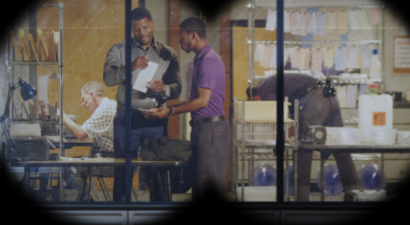 United States Postal Inspection Service- Inspector Training, Washington, DC. Georgia (Charmin Lee) is instructing the trainees including Preston on a procedure that is becoming a growing crime epidemic: check washing. “Check washing is a technique used to clean all the ink off a paper check like it’s never been cashed. Criminals use a special chemical solution so that it doesn’t damaged the paper. And the washed check simply hangs out to dry,” Georgia explains as she shows them how check washing is performed, “And the perps can write in any amount made payable to anyone they choose.” We see check washing being done at an office building as Georgia is giving her demonstration.