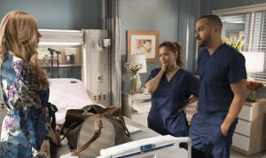 The episode is titled “Caught Somewhere in Time” Here is the synopsis from TV Guide: “Maggie and Jackson are enjoying spending time together, but he must turn his concentration toward the groundbreaking vaginoplasty surgery he has scheduled with Catherine and Richard. Meanwhile, Meredith and Jo hit a roadblock with their contest submission, so Jo helps Bailey with an incoming trauma patient who used to be anastronaut.”