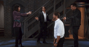 Anna was determined to find Henrik before Jason. After all, she knew that if Morgan found her son before she did, Henrik was a dead man. On the pretense of working together, Anna and Jason came up with a plan to lure Henrik out into the open by having Anna email him “pretending” to be his mother (Jason had no idea that Anna really was Henrik’s mother). But Henrik realized what Agent Devane was doing. He agreed to meet his mother on Pier 55. Anna was shocked to learn Peter August was Henrik. Before she could offer him an explanation, Henrik pulled his gun out on her. ” You can say hello to my father for me,” Henrik sneered. “You can tell him yourself Henrik,” said Jason coming up from behind and pointing his own gun at Henrik’s head. In order to keep Jason from killing her child, Anna took out her gun and trained it at Jason. Then to his and Peter’s shock, revealed that she was Henrik’s mother. Hurt and bitter over being abandoned, Henrik angrily tells Anna “You’re not my mother, you’re just the bitch who gave birth to me.” It’s an intense standoff with the arriving Finn (Michael Eastman) and Sam showing up and trying to talk Anna and Jason into lowering their weapons. Once Robert (Tristan Rogers) and the PCPD appeared, Henrik was arrested.