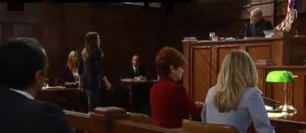 General Hospital’s Carly Corinthos (Laura Wright) goes on trial for two counts of attempted murder accused on pushing a pregnant Nelle Benson (Chloe Lanier) down a flight of stairs at the Quartermaine mansion. If convicted, Carly faces 15 years in prison. Her attorney legal eagle Diane Miller (Carolyn Hennesy) has advised her client to plead temporary insanity, reasoning that a few months at a mental hospital like Shadybrooke is better than the maximum security prison Pentonville. But Carly is not guilty as Nelle’s fall was an accident. Additionally, Nelle had been scheming for months to make Carly believe she (Carly) was going crazy. Carly realizing what Nelle was up to lead to a confrontation between the two women and Nelle’s subsequent fall. Carly’s story that she and Nelle were arguing and struggling over a baby blanket can’t be proven because the blanket is missing (Ava Jerome has it). And even if the blanket and other evidence of Nelle’s gas-lighting of Carly is found by Jason, it gives Carly motive for pushing Nelle.