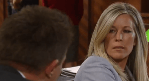 So what choice should Carly make? She doesn’t want to say she’s guilty for something she didn’t do, especially since it is admitting to trying to kill her grandchild by causing its mother to miscarry. Jason agrees with Carly, but Diane and Sonny rather Carly render a guilty plea than take her chances and risk a conviction.