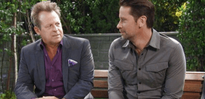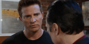 Sonny (Maurice Benard) told Jason (Steve Burton) about Nelle (Chloe Lanier) visiting Carly (Laura Wright) at Ferncliff to give her the wedding news. He also told Jason about learning from Mike that the Croton body was buried in Charlie’s Pub. Michael (Chad Duell) received a text from Chase (Josh Swickward) asking him to come to Jordan’s (Vinessa Antoine) office. Kiki (Hayley Erin) insisted to Griffin (Matt Cohen) to keep the secret of them sleeping together, but Dr. Monroe refused to lie under oath. In the end, Kiki decided to spare her mother the truth. At Charlie’s Pub, Nelle showed Ava her engagement ring. Ava (Maura West) reminded Nelle she had the baby blanket and would be holding onto it. Jordan was skeptical about Chase’s plan to trap Nelle as it involved Michael pretending to die. While she waited for Baby James to come home, Maxie (Kristen Storms) invited Lulu (Emme Rylan) over to join she and her friend Colonel Harlan Sanders (George Hamilton) of KFC fame for lunch. Colonel Sanders told the story about how a syndicate tried to steal his secret recipe. Maxie agreed to hide the chicken recipe for Colonel Sanders. PC Pioneers Ranging Racoon scout Wyatt (Patrick J. Gibbons) returned to the cabin for his bugle. Peter (Wes Ramsey) asked whether the boy had told anyone he (Peter) was there. Wyatt hadn’t as he thought no one would believe him. However, Peter was able to convince Wyatt to untie him. Jason checked Charlie’s Pub for structural damage in the basement due to the earth quake that could unearth the body. The foundation was in tact. However, Julian (William deVry) later revealed to Jason and Sonny that he was planning to expand the pub.