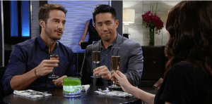 Michael (Chad Duell) assured Jason (Steve Burton) and Sonny (Maurice Benard) he knew what he was doing when he proposed to Nelle (Chloe Lanier). Sonny decided to go to Ferncliff to give Carly (Laura Wright) the engagement news. Elizabeth (Rebecca Herbst) introduced Terry (Cassandra James) to Cameron, who left to watch the fireworks. After Cameron left and Franco (Roger Hogwarth) arrived, Liz made the introductions. Franco admitted he was relieved Terry is now a woman. Terry told Elizabeth and Franco how she never felt like herself when she was a boy and decided to do something to reconcile the physical with the emotional. Terry was now able to be her true self. Unfortunately, neither Terry’s parents or her brother Sean were able to accept who she really was and Terry’s brother hasn’t spoken with her since she transitioned. Josslyn (Eden McCoy) apologized to Oscar (Garren Stitt) for how she acted the last time they were together. When Cameron arrived, it was obvious that Oscar was experiencing pangs of jealousy. Carly kept her cool while Nelle taunted her about the bond she and Josslyn share and when Nelle revealed she and Michael were engaged. Sonny’s arrival signaled Nelle’s departure. Even though he explained Michael’s real motive for proposing, it didn’t stop Carly from worrying about her son and what Nelle could do to him. Brad (Parry Shen), Lucas (Ryan Carnes) and Sam (Kelly Monaco) had a pre-adoption celebration at The Metro Court while Julian (Willian deVry) watched. He lamented to Kim (Tamara Braun) how he regreted not raising his children. Julian assured Kim that he doesn’t judge her for the choices she made with Oscar; he knows she didn’t keep him from Drew on purpose. Michael was determined to make Nelle feel safe and secure so she’d make a mistake. Jason urged Michael not to let Nelle make him sell his soul. Elizabeth was happy Terry would be working at General Hospital and invited her friend to her wedding. Nelle returned to the Quartermaine mansion and admitted to Michael she went to give his mother the good news about their engagement. Sonny promised Carly they’d celebrate Independence Day next year. While Kim, Julian, Brad and Lucas watched the fireworks at The Metro Court, Sam and Danny joined Jason on the bridge and watched the fireworks display together as a family.