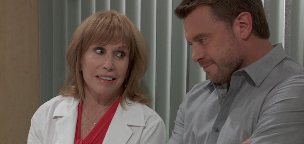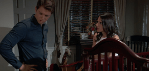 Chase (Josh Swickward) came to the interrogation room and offered Jason (Steve Burton) a cup of coffee. He assured he had no intention of playing good cop to get Jason to crack because some of the senior officers warned that was impossible. Kevin (Jon Lindstrom) talked with an orderly about lowering the medication dosage of the “special patient” and said he would be back later for a long overdue talk with the patient. Chase told Jason that the D.A. decided not to pursue Peter August (Wes Ramsey) for fraud and questioned Morgan about how he doesn’t want justice for August taking five years of his life. Then, Chase reminded that breaking Carly (Laura Wright) out of Ferncliff and threatening staff with a gun were major felonies and that he (Chase) didn’t know how Jason could get on with his life with the heavy charges facing him. Carly thought Sonny (Maurice Benard) needed to consider long term care for Mike (Max Gail). She commented how worn out Sonny seemed. He reminded that with everything he’s been dealing with, if he looked tired it was because he was. Margaux (Elizabeth Hendrickson) met Oscar (Garren Stitt) while she was with Drew (Billy Miller) at The Metro Court. After she left, Oscar told his dad that he (Oscar) wanted to spend time with Josslyn (Eden McCoy) as she was going through a lot after being deceived by Nelle (Chloe Lanier) and losing her nephew. At Kelly’s, Josslyn noticed the expensive earbuds Cameron had and accused him of stealing. Cameron asked whether Josslyn called it stealing when she does it. When Alexis called Griffin to the stand to elaborate on the nature of the photo, Scott frantically texted Franco to tell her to stop the questioning. Unfortunately, Ava had texted Franco at the same time to ask What’s going on? so Franco replied back with the text meant for Alexis to Ava with the message Kiki and Griffin Had Sex! The judge confronted Franco about his texting and then had the baliff remove him from the courtroom. Griffin (Matt Cohen) testified that he and Kiki were just friends. Franco pulled the fire alarm to clear the courtroom. But the security camera caught him doing it. Chase arrived at Kelly’s and showed Cameron the security footage of him at the store. Then Chase asked to check Joss’ bag but didn’t find any stolen merchandise. When Kevin arrived at the Corinthos house to ask Carly to return to therapy, Carly mentioned how the drugs she was given made her hallucinate that she was seeing him (Kevin) at Ferncliff after he left to go to France to visit Laura. When Kevin returned to Ferncliff and went to talk with the mysterious patient, we saw it was his supposedly dead serial killer brother Ryan Chamberlain. Margaux questioned Jason about the crimes he’s committed since 1996 under Sonny’s orders and made a comment about how different he and his twin brother Drew Cain were. Then, she dropped the charges against him as there was no security camera footage of him breaking Carly out of Ferncliff and the staff’s statements would be called into question due to what was going on at the facility. Jason found Drew at The Metro Court and warned his brother that D.A. Dawson had an agenda. Ava sat over the defendant’s side and pushed Scott to ask the one question that needed too be answered. Baldwin realized she knew about her daughter and Dr. Munro and then asked Griffin whether he ever had sex with Kiki Jerome.