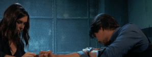In the courtroom, Alexis (Nancy Grahan) rehearsed her opening statement when Julian (William deVry) entered. Kiki came to her mother’s apartment and Ava (Maura West) helped her choose the right outfit for the trial and encouraged her to take the power back from Bensch. Scott (Kin Shriner) warned Franco (Roger Hogwarth) that some ugly surprises may come out during Kiki’s trial. At The Metro Court, Maxie (Kristen Storms) and Nina (Michelle Stafford) talked about Crimson when Valentin (James Patrick Stuart) appeared. Valentin told Nina he had the stables repaired with any trace of what happened there erased. Later, Valentin took a call about visiting a mysterious prisoner. An annoyed Peter (Wes Ramsey) told Robert (Tristan Rogers) how his colleagues at the WSB were in his hospital room questioning him all night and left less than satisfied. Robert said that if Peter gives him the information he wanted, he’d consider granting him his freedom. Peter told Robert about the other patients but didn’t know what the end game was. Although Robert accused Peter of stalling, he’d decided not to send him off to super max. Instead he offered him a deal: Peter was to make himself available if or when the WSB needed him for an assignment and give his full cooperation. As charges could be refiled at any time, Robert warned August he’d better not give Anna or Robin any grief in the future. Robert also told Peter that as the WSB had frozen Faison’s assets, August was penniless. Even though Robert dropped the charges, gaining his freedom wasn’t guaranteed when Margaux (Elizabeth Hendrickson) entered to discuss the state’s charges. D.A. Dawson told Peter that she although she wouldn’t pursue the fraud charges and couldn’t get him on attempted murder without Anna Devane’s testimony, she intended to get him on identity theft for his part in Drew’s (Billy Miller) stolen memories. Finn (Michael Easton) demanded proof from her captor that Anna (Finola Hughes) was still alive. We finally saw Anna. First, Finn was shown a picture of her and then she was brought to him with the warning that if their patient died so did she. Scott told Franco about Kiki and Griffin (Matt Cohen) sleeping together and suggested Franco warn Alexis so she can do damage control if testimony came out about Kiki and Griffin. Anna learned about Robert’s rescue plan and feared Scorpio would mess things up. Since Drew decided not to press charges, Peter was free to go. He ran into Maxie and Nina and asked to see baby James. Nina asked Peter whether he would be leaving town. Peter decided since Port Charles was the closest place he ever had to a home, he’s would stay. Anna removed the tracker from Finn’s hand so Robert lost the signal. At the courthouse, Franco told Alexis he had to talk with her.