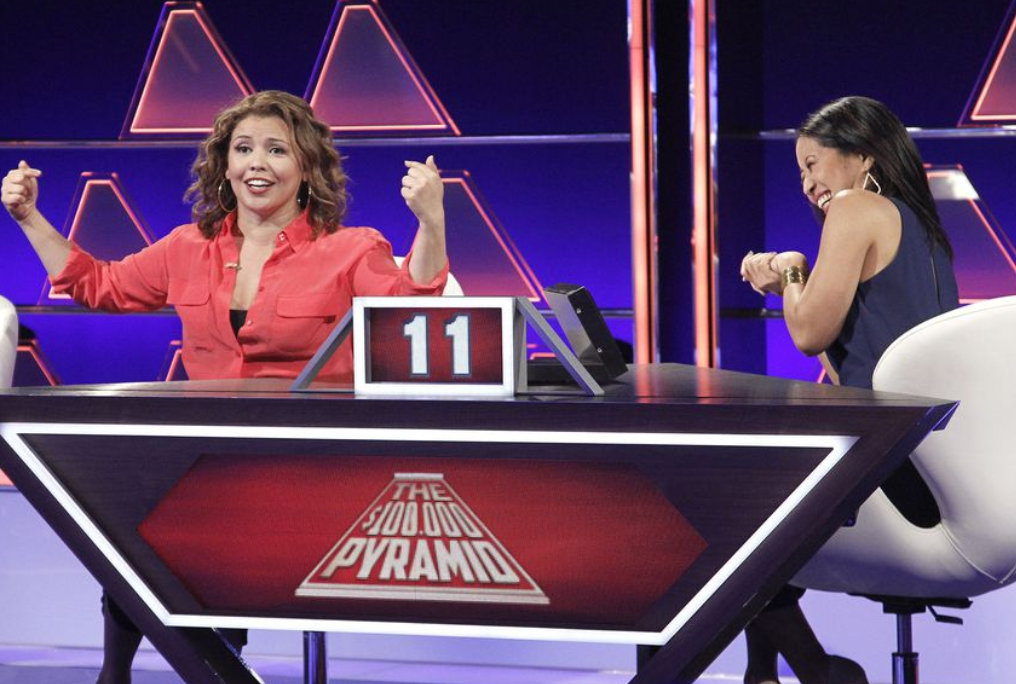 It’s Rita Moreno vs. Justina Machado and Leslie Jones vs. Julie Bowen on the $100,000 Pyramid episode airing August 26.