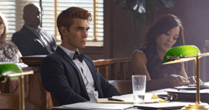 The episode is titled “Chapter Thirty-Sixth: Labor Day” Here is the synopsis from TV Guide: “The Season 3 premiere: The jury begins deliberations in the murder trial; and Archie makes a surprising request about how he wants to spend his final days of summer. Betty is forced to deal with her problems head-on after a heated confrontation with Alice and Polly brings up some dark secrets she’s kept hidden. Veronica pleads with Hiram to step in and help Archie before a verdict is announced. Finally, Jughead leads the Serpents against the Ghoulies latest attack.”