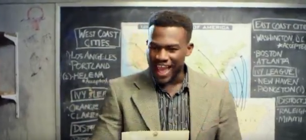 Ibadan in Nigeria, Africa. A man named Nigel (Onye Eme-Akwari) tells a group of young college students to be proud of what they are accomplishing. “It’s not about building their schools. It’s about building ours,” he says. He encourages them to recruit smart students in need of cash who won’t mind doing the “extracurricular” activity. And while they are doing this at their schools, he’ll be going to Jamestown University doing the same.