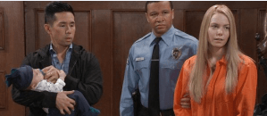 Ryan (Kevin Lindstrom) came downstairs to find Laura (Genie Francis) decorating the table for a romantic dinner. She asked how he was feeling. “Kevin” told her he finally conquered that bug he was fighting. Laura was relieved as she wanted them to celebrate their second honeymoon complete with a dance to the song that played at their wedding. When he seemed less than enthusiastic, Laura asked what he’d done with her husband because he wasn’t the man she married. Ryan thought Laura was onto him and fingered a knife. But once he realized his ruse was still safe, Ryan lied he had to leave because he had a patient he needed to check on. Lulu (Emme Rylan) and Charlotte (Scarlett Fernandez) arrived to have dinner with Laura and Ryan left. Laura gave Scarlett the doll she brought back from Paris but Scarlett said she was too old for dolls and preferred the other gift, a book. Elizabeth (Rebecca Herbst) came to Sam’s (Kelly Monaco) and told her about Oscar (Garren Stitt) refusing cancer treatments. Sam thought Liz wanted her to not see Jason (Steve Burton) in order to make Drew (Billy Miller) feel better. On the pier, Drew asked Franco (Roger Hogwarth) what if should do if getting his memories of Drew Cain back meant sending Jason to prison. At the courthouse, Nelle (Chloe Lanier) saw her baby and commented how much bigger he was from the last time she saw him. She covered for Brad (Parry Shen) with Carly (Laura Wright), Michael (Chad Duell) and Chase (Josh Swickward) by lying she recognized Wiley from the photos Brad and Lucas posted after the adoption became official. Nelle asked to hold the baby but Chase wouldn’t allow it. After Brad left to pick up the passport application for Wiley, Nelle announced she’d changed her plea to nolo contendere or no contest, meaning she accepted the charges without admitting guilt. Jason showed Sonny (Maurice Benard) prove Vincent Marino was as dirty as Scully. Ryan visited Kevin in Ferncliff and taunted his twin about Laura’s return. Carly and Michael returned to Sonny’s and told he and Jason that Nelle changed her plea to no contest. Nelle was sentenced to maximum sentence. Before she was taken to Pentonville told Brad that she could get out early for good behavior. Realizing Sam and others who cared for Morgan could be hurt if he traded his memories for Jason’s freedom, Drew came to see his ex-wife.