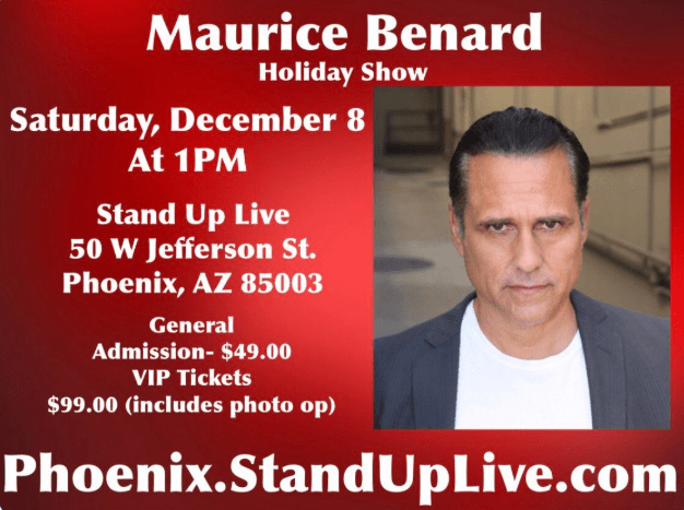 Benard who plays Sonny Corinthos on the long running ABC daytime drama General Hospital is performing a holiday show at 1:00PM at Stand Up Live in Phoenix located at 50 W. Jefferson Street on Saturday, December 8, 2018.
