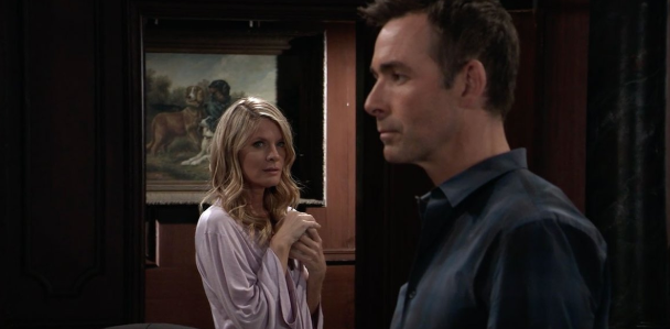 “I have a feeling tonight is going to be unforgettable,” Ryan (Jon Lindstrom) told Laura (Genie Francis) and Felicia (Kristina Wagner). Michael (Chad Duell) told Carly (Laura Wright) he was taking a step in the right direction towards his healing. Josslyn (Eden McCoy) and Cameron (Will Lipton) were Princess Leia and Hans Solo for Halloween. Although he’d agreed to the costume, Cameron drew the line at bringing a stuffed Chewbacca not liking props unlike Oscar (Garren Stitt) who brought Mother of Dragons Josslyn toy baby dragons last year. At Charlie’s Pub, Drew (Billy Miller) came to see his son and Oscar told his father he (Oscar) found a place to live. Carly reminded Ava (Maura West) she got away with murdering Connie due to lack of evidence. Drew wanted to go on a father/son trip. But when he told Oscar the clinical trial started December 1, Oscar accused Drew of wanting him out of town so he couldn’t pursue his case. Kim (Tamara Braun) told Julian (William deVry) she was convinced the clinical trial would save her son’s life. Curtis (Donnell Turner), Jordan (Briana Henry) and Chase (Josh Swickard) arrived at the benefit. Chase later asked Michael how he was doing. Michael said his heart was breaking over Jonah’s loss. Ned (Wally Kurth) and Olivia (Lisa Locicero) showed up at the benefit where Olivia announced she and the mayor would match every donation made. And Ned said he would make mental health a key focus. Carly confronted Mayor Quartermaine about the conditions at Ferncliff. Ned vowed to make mental health reform a priority after his inauguration with the creation of a task force and invited Laura to join it. But Alexis (Nancy Grahan) revealed the latest polls showed Laura’s numbers climbing. When Nina (Michelle Stafford) accused Valentin (James Patrick Stuart) of plotting to get her to remain on Spoon Island tonight, he reminded the Cassadines didn’t actually control the weather. But Valentin told his ex-wife he would do anything to convince her that belonged together. Nina and Valentin shared a kiss. He told her Charlotte (Scarlett Fernandez) would be thrilled if she were to walk in and see them together. Nina said she couldn’t risk getting back together with Valentin as she knew he’d hurt her again. Although she’s up 28 percent, Laura reminded she couldn’t win an election next week with that number. “Kevin” told his wife anything could happen. Drew told Oscar he wasn’t trying to deceive him with the trip; he just wanted to spend as much time as possible with him. Oscar apologized to his father. Drew suggested they could celebrate Halloween. On Pier 55, Cameron found Mary Pat’s ID. “Kevin” told Laura he had to leave to continue with the sleep study he was working on. Laura told the benefit attendees that a $500 Wyndham’s gift card would be awarded to contest winners. First event was bobbing for apples. Carly offered to go first and screamed in horror when Mary Pat’s life less head popped up among the apples.
