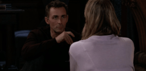 When Chase (Josh Swickard) approached Ms. Tait in her car, she threatened to call the police. He told her he was the police. After checking his credentials, Willow had to walk a straight line to prove she wasn’t drunk. But when Chase asked Willow to move her car, it wouldn’t start. Laura (Genie Francis) told Carly (Laura Wright) how proud she was of her for standing her ground at Ferncliff. Carly was sorry she was never got to see the patient in the room next to hers. Ryan (Jon Lindstrom) assured Mary Pat (Patricia Bethune) he wanted to conclude their business as quickly as possible. He swiped a bottle from the bar so they could talk in private on Pier 55. Peter (Wes Ramsey) showed Lulu The Invader’s circulation numbers were up but still was determined to scrap her story. Britt wanted her medical license reinstated in order to help Anna (Finola Hughes) find Liesl (Kathleen Gati). Anna reminded Britt what she did to Lulu (Emme Rylan) by stealing her embryo. Britt had one more demand that was non-negotiable. Finn (Michael Easton) and Anna took her to The Floating Rib for a barbecue dinner. Carly told Laura she thought she recognized her neighbor at Ferncliff. On Pier 55, Ryan told Mary Pat she didn’t want a serial killer released on the street. Mary Pat said she didn’t care. She was out there; Ryan Chamberlain was locked up in Ferncliff where he couldn’t hurt anyone. Peter told Lulu their readers didn’t care about a psychological analysis of what makes evil. Lulu wondered as the son of Cesar Faison whether Peter was over sensitive. “Oh Hell no!” Lulu said angrily when she spotted Britt eating ribs. Mrs. Falconieri poured a pitcher of margaritas over Britt’s head then introduced Peter to his sister. Ryan ignored a call from Laura and assured Mary Pat she was his priority. Sonny (Maurice Benard) told Sam (Kelly Monaco) and Jason (Steve Burton) the letters just proved Jeannette’s intent to have her husband killed. He felt a little sorry for Margaux that she would soon discovered everything she knew about her past was a lie. Michael (Chad Duell) told Carly he wasn’t okay not without his son. Peter and Britt briefly talked about their bad childhoods. Anna pulled Peter aside and told him she was using Britt to help her find Liesl and needed Peter to keep Lulu under wraps. And after Liesl is captured, The Invader will get the exclusive. Britt learned she’d be staying at Anna’s house instead of The Metro Court. After Lulu ran into Chase and Willow in the parking lot of The Floating Rib and helped Ms. Taut with her car, Willow went to the bereavement group meeting at GH; the same meeting Michael was attending. Mary Pat wanted Dr. Collins to get her a job at General Hospital and give her financial assistance in the meantime, hinting the arrangement would be ongoing. After Mary Pat walked away, Ryan picked up a hooked crate opener.