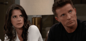 Reviewing Joe Scully’s letters to Jeannette Marino, Sam (Kelly Monaco) fantasized she and Jason (Steve Burton) admitting their feelings for each other. At The Floating Rib, Michael (Chad Duell) told Sonny (Maurice Benard) he was okay. Curtis (Donnell Turner) and Jordan (Briana Henry) discussed the seating chart for their wedding and Stella’s (Vernee Watson) absent chair. Stella interrupted Ryan (Jon Lindstrom) as he was on his way to Ferncliff. Carly (Laura Wright) told Laura (Genie Francis) she wanted to put a face to the patient in the room next to hers. Sonny told Michael D.A. Dawson was out for his head. Stella wouldn’t let Dr. Collins leave GH until he completed request paperwork. Laura saw the patient’s room was empty. Kevin (also Lindstrom) sat unconscious on the floor. Jason told Sam he wanted Danny to someday know the choices Jason he took responsibility for choices he made in his line of work while Sam worried how she would some day explain her choices to Scout. Jason found a letter where Jeannette wrote to Scully the only way they could be together was if Vincent were gone. Carly reminded Mary Pat that she is suffering the consequences of her actions. When Ryan entered, Mary Pat told “Dr. Collins” in her 19 years, she followed given instructions as well as kept certain confidences. She left for margarita night at The Floating Rib. “Kevin” said Laura should have let him know of her plans to visit Ferncliff; he couldn’t have stand if something happened to her. Jason showed Sonny the letter where Mrs. Marino ordered the hit on her husband. Carly demanded the patient’s door be opened. Anna and Finn paid a visit to Britt in prison. Anna promised she could arrange a visit at The Metro Court between Britt and Peter (Wes Ramsey). Stella assured Jordan although she no longer blamed her for Thomas’ death, she (Stella) still couldn’t attend their wedding. Michael vowed to Margaux he’d exercise legal means to get her to back down. Jason said if the letter didn’t convince Margaux to back down nothing would. Anna gave Britt a paper to sign where Britt agreed to a covert WSB mission in exchange for her trading places in Pentonville with Liesl (Kathleen Gati). Laura stopped Nurse Kay from opening patient’s door. Barely conscious Kevin heard his wife’s voice and called out to her. At The Floating Rib, Mary Pat told Dr. Collins she knew he’d show up.