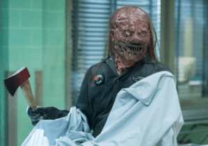 Davy Perez wrote “Mint Condition” and the episode was well written and tight with some really good dialogue. As directed by Amyn Kaderali, the pacing with the undercutting between what was happening in reel life with Hatchet Man (Barry Nerling) and real life David Yaeger spirit possessed Hatchet Man made for some funny and exciting moments. I loved how the security guards were so focused on their movie that they totally missed all the action playing out right under their noses. We also got some similarities between this episode and Season Two Episode 18 “Hollywood Babylon” complete with a Hell Hazer: The Reckoning throwback.