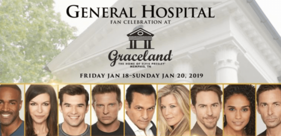 It has been announced that a fan celebration is taking place Friday, January 18, 2019 – Sunday, January 20, 2019 at the home of Elvis Presley. The General Hospital actors scheduled to attend are: Maurice Benard (Sonny), Laura Wright (Carly), Steve Burton (Jason), Finola Hughes (Anna), James Patrick Stuart (Valentin), Wes Ramsey (Peter), Josh Swickward (Chase), Donnell Turner (Curtis) and Briana Henry (Jordan).