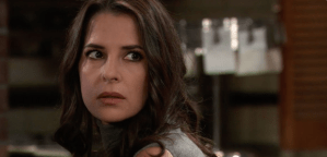 Curtis (Donnell Turner) brought Jordan (Briana Henry) to Kelly’s to celebrate their in town honeymoon. Jordan said she felt she missing something in the case that’s right in from of her. Julian (William deVry) left General Hospital without saying anything when he saw Kim (Tamara Braun) and Drew (Billy Miller) in a close moment. Elizabeth (Rebecca Herbst) asked Cameron (Will Lipton) to come home to take care of his brothers. Cameron texted a mysterious person. Laura (Genie Francis) told Lulu (Emme Rylan) that Charlotte (Scarlett Fernandez) was Aiden’s bully. Spotting his Aunt Stella (Vernee Watson) inside Kelly’s with Marcus, Curtis told his wife that Marcus was the reason Stella came to their wedding. Mike (Max Gail) had an episode where he forgot he was Sonny’s (Maurice Benard) father. Max left the room. Sonny told Carly (Laura Wright) how hard it is seeing his father slipping away so fast. Cameron was trying to decide whether to bake the weed he was going to acquire into brownies. Lulu decided to go over to Wyndemere to straighten out the bullying situation with Charlotte. Even though she was moving out, Valentin (James Patrick Stuart) vowed to Nina (Michelle Stafford) that he would never stop trying to win her back. Jordan thanked Stella for coming to the wedding then admitted she had tried to find Marcus for Stella. Alexis (Nancy Grahan) wanted to take Kristina (Lexi Ainsworth) to a spa to celebrate her daughter’s birthday and told Kristina she could bring a friend if she liked. Julian returned to Charlie’s Pub and was in a foul mood after witnessing Kim and Drew together. He started criticizing Kristina’s work, including how she cut the limes then fired her! When Alexis confronted Julian about his actions, he later rehired Kristina and because of Alexis, gave her a five dollar an hour raise. Laura (Genie Francis) came to visit Elizabeth (Rebecca Herbst) and ended up helping Cameron make his brownies for what he said was the school bake sale. Lulu arrived at Wyndemere and talked with Charlotte about the way the little girl has been treating Aiden. Charlotte called Aiden weird; no one at school liked him. Lulu reminded her daughter that Charlotte should always try to treat others as she liked to be treated. When Charlotte said she was sorry, Lulu told her daughter she had someone else to apologize to. Franco (Roger Hogwarth) ate some of Cameron’s brownies. Learning that Julian had made a secret deposit into her account and also arranged cleaning and shopping help, Kim came to see “Charlie” to thank him for always taking care of her. Seeing how well Jordan and Stella seemed to be getting along, Curtis wondered what he’d miss. Marcus saw Mike and Yvonne almost kiss under the mistletoe. Feeling Lulu didn’t treat Charlotte right and worried about her stepdaughter, Nina told Valentin that she decided not to move out of Wyndemere. Elizabeth opened the door to Lulu and Charlotte, who Ms. Falconieri brought over to apologize to Aiden.