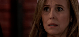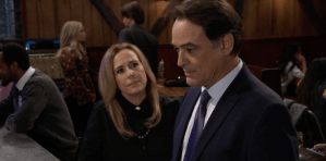 The election was too close to call. Alexis (Nancy Grahan) congratulated Laura (Genie Francis) on how she ran her campaign. Maxie (Kirsten Storms) was visiting Lulu (Emme Rylan) and was surprised when Peter (Wes Ramsey) arrived. Mac (John J. York) called “Kevin” (John Lindstrom) and told him they needed to talk about Ryan (also Lindstrom). Ryan bumped into Anna (Finola Hughes) as he was leaving General Hospital and offered his apologies. Michael (Chad Duell) assured Ned (Wally Kurth) if he didn’t win the election there would always be a place for him in the family business. Maxie asked Peter whether he’d come to see her until Lulu reminded her friend the world doesn’t revolve around her. Ms. Falconieri asked Ms. Jones to leave so she could discuss something confidential with Peter. After Maxie left, Lulu told Peter about the D.A. questioning her about her research into Ryan’s murder’s and the souvenirs the serial killer kept. Peter reminded Lulu to verify her information and to make sure the article is published responsibly as the last time cost Nathan his life. He then texted Anna and asked to meet with her. Mac told “Kevin” about the killer keeping his victims’ driver licenses. Ryan explained that the killer probably keeps them because they are a history of the people he’s killed as well as trophies. On Pier 55, Sam (Kelly Monaco) and Jason (Steve Burton) ran into Shiloh (Coby Ryan McLaughlin). Sam confronted him about he being David Henry Archer, the son of a man since was once married when she was going by another name. Shiloh assured he didn’t know who she was then talked about the mistake he made in the past as a rich trust fund kid who blew through his money but found purpose after Navy Seal Drew Cain (Billy Miller) saved his life. The result were in and the new mayor of Port Charles was Laura. Ryan raised his glass to her. Later as he was looking at Peyton Mills’ driver’s license, Laura approached Ryan. She didn’t see Peyton’s photo on the license because Ryan’s finger covered it. He quickly put the driver’s license back into his wallet. Laura questioned him about the mixed signals he was giving off. “Kevin” assured that even though they were divorcing that didn’t stop his belief that she’ll be an excellent mayor. After Shiloh left, Sam told Jason that part of playing your mark is to get them to tell you what they want. She hoped that as trusting as Kristina is that her sister would be taken in by con man Shiloh. Peter met with Anna and asked her about the flash drive containing information on her past she gave him for Christmas. They talked about Faison and Peter’s extended family (including the Scorpios). Suddenly Anna began not feeling well and told Peter a side effect of her medical procedure off replacing her blood causes headaches. Peter had to catch Anna when she almost passed out. Anna panicked when she couldn’t see.