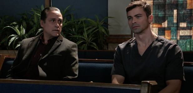 Sonny (Maurice Benard) and Griffin sat in the hospital chapel. Although Griffin appreciated Sonny’s words about Kiki (Hayley Erin) but it only made him (Griffin) angry that a young woman with such promised and her whole future ahead of her had to have her life cut short. Ryan (Jon Lindstrom) looked at the trophies of his victims. The driver’s license were hidden beneath a false bottom of his collector’s box. Ava (Maura West) ran into Franco (Roger Hogwarth) on the docks and told him her plan to play a victim to lure the killer out in the open. Peter (Wes Ramsey) had to catch Anna when she fainted. When Anna regained consciousness, she panicked when she couldn’t see. Peter rushed his mother to General Hospital. Meanwhile, Liesl (Kathleen Gati) arrived at General Hospital to and told Finn (Michael Easton) she was there to talk with HR about getting her job back. Finn reminded Liesl of her crimes and said General Hospital did need someone like her around to which Liesl replied she changed her mind about offering GH her expertise. Griffin told Sonny that he’s loss his faith; what’s the good in belief and prayer when bad things happen? Dr. Munroe was paged and had to leave. Drew (Billy Miller) and Kim (Tamara Braun) discussed Oscar (Garren Stitt) when Sonny appeared saying Carly (Laura Wright) told him about Oscar and he was there to offer them his resources. But Kim told Sonny she’s done research and that there wasn’t any miracle cure for Oscar. At General Hospital before she was taken away for tests, Anna thanked Peter for being there for her. Valentin (James Patrick Stuart) was romancing Nina (Michelle Stafford) with roses when Liesl entered Crimson. She announced that Valentin offered her a job at Cassadine Industries. Trapped, Valentin was forced to play along. Liesl asked to speak with her niece alone. Liesl warned Nina against reconciling with Valentin, reminding how Cassadine wore many faces to get what he wanted. Nina assured she knew Valentin’s faults but he did help find her daughter. When Nina commented that Sasha (Sofia Mattsson) was so much like James and she couldn’t wait for Sasha and Liesl to meet, Obrecht expressed disinterest piquing Nina’s curiosity. Peter met with Valentin and told him how he (Peter) had to take Anna to the hospital after she collapsed and when she regained consciousness, she was blind. Griffin told Anna they couldn’t cure her blindness because they didn’t know what was causing it. Peter urged Valentin not to go see Anna and taunted that Liesl would use whatever she had on Valentin sooner than later. Liesl told Nina there was something she (Nina) needed to know about Sasha. After “Kevin” told him he didn’t think it would be a good idea to continue treating him, Franco broke into Dr. Collins’ office and looked for his file. Franco was unaware how close he was to evidence that linked who Port Charles believed to be Kevin to the murders.