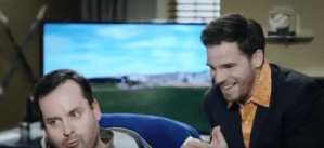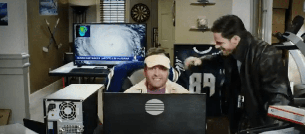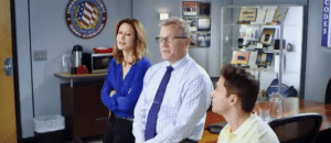 Amanda (Jessica Lundy), Mitch (Terry Serpico) and Preston (Bret Green) watch a news report about a hurricane hitting landfall in Alabama. Bret asks his mother whether she and Mitch will be going down to the location. Amanda answers not this time as all postal employees in the effected areas are accounted for. “The hurricane’s over,” Amanda says. “But another storm may be on the way,” Mitch added. “Mother nature has a way of bringing out the scammers,” Preston commented.