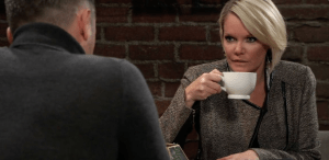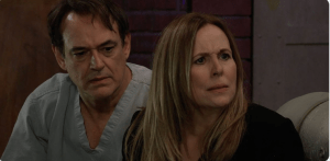 Sonny (Maurice Benard) questioned whether Robert (Tristan Rogers) intended to leave Dante trapped in the cold. Sonny demanded Robert tell him that he (Robert) had the authority to find Dante and bring him home. But Agent Scorpio said he couldn’t bring Dante home without starting a diplomatic incident. Jason (Steve Burton) told Sam (Kelly Monaco) they had to make sure Shiloh (Coby Ryan McLaughlin) wasn’t playing her. Terry (Cassandra James) knocked on Elizabeth’s (Rebecca Herbst) car window and asked her friend how she was doing. Liz told Terry about Franco pleading guilty but she knew it wasn’t true and needed to find out. Elizabeth told Terry that she and Franco had married. Franco (Roger Hogwarth) refused to Jordan’s (Briana Henry) plan to give a tell-all interview about the murders to an eager reporter. Franco didn’t want to tell the world he was guilty without first alerting Elizabeth to the truth. Jordan gave Franco a burner phone. However, she had it blocked where he couldn’t call any other number but hers. Dr. Cabot told Anna (Finola Hughes) how she’d be abducted and had no memory of participating in the study and contracting the HN242 virus. Ava (Maura West) and Ryan (Jon Lindstrom) came to The Metro Court and announced their engagement to Carly (Laura Wright), who sarcastically asked how his wife Laura felt about it. He said he and Laura would soon be divorcing then told Ava he had to run an errand. Meanwhile, Laura (Genie Francis) pounded on the door yelling for help. Kevin urged her to take a rest. Despite their predicament, Laura was happy they were together. She commented about Ryan surprising Kevin and getting the jump on him (unaware Kevin knew Ryan was alive all along). Ryan entered and threaten to kill them if Laura didn’t sign the divorce papers. At first she refused as Laura didn’t want to make it easy for Ryan to hurt Ava anymore but seeing no choice, Laura ended up signing the document. Ryan left. Kevin assured his wife that if they got out of there, he’d marry her all over again. Carly told Sonny about Ava and “Kevin’s” engagement and Sonny told her that he was going to Turkey to find Dante and bring his son home. Terry urged Elizabeth to yell out her hurt and pain and assured her friend if she ever needed someone to talk with she’d (Terry) be there for her. Franco used the burner phone to make a call. As part of the plan, he arranged to set up an interview. Anna was shocked when she learned that she’d received Alex’s memories. As he drove, Drew experienced a painful headache and and blurred vision and ended up running his car into Jordan. Meanwhile as Jason climbed the staircase at ‘The Tower’ to get to Sam and Shiloh, he too got a bead headache and blurred vision. Then, Jason fell down the stairs! Hearing the noise, Sam rushed down the stairs and found Jason at the bottom.