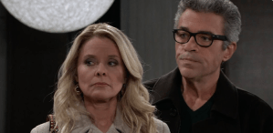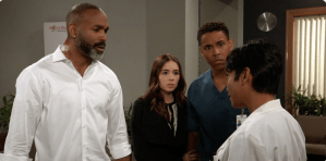 Jason (Steve Burton) woke up in General Hospital to find Carly (Laura Wright) sitting by is bed. Sam (Kelly Monaco) thanked Shiloh (Coby Ryan McLaughlin) for helping her get Danny and Scout’s fathers to the hospital. She covered when Shiloh questioned her about how Jason knew where they were. Finn (Michael Easton) told Drew (Billy Miller) he contracted a virus that caused his blindness. Drew asked whether he hit anyone. He learned he hit Jordan with his car. Meanwhile, Curtis (Donnell Turner) sat by Jordan’s bedside and asked his Aunt Stella (Vernee Watson) whether she’d heard anything about his wife’s injuries. Stella told her nephew that Jordan’s injuries were being monitored because she sustained broken ribs and damage to her kidneys. At The Metro Court, Maxie (Kirsten Storms) checked her phone as she awaited lab results on Sasha’s (Sofia Mattsson) DNA test. Anna (Finola Hughes) came to see Jason and told he and Carly about the virus that caused the retinal blindness. She explained that Dr. Cabot was the original developer of the serum and Andre obtained the information through Cabot’s notes. Anna told them how she and her twin Alex (also Hughes) were the first test subjects. Anna assured Jason she wasn’t given any of Alex’s memories. While Nina (Michelle Stafford) tried to get Sasha to stay in Port Charles until the wedding, Valentin (James Patrick Stuart) asked Peter as his oldest friend and someone who knew how much Nina meant to him to be his best man and August accepted. Drew apologized to Curtis for accidentally hitting Jordan with his car. Valentin told Nina he asked Peter to be his best man. Peter explained to Maxie that serving as Valentin’s best man will enable him to keep an eye on him. Carly told Jason she’s pregnant and Jason later told Sam. When the DNA confirmed Sasha wasn’t a match but indicated Subject B as an African American woman. Stella sat by Jordan’s bed and offered apologies on how she’d (Stella) treated her in the past. After Carly left his hospital room, Sam told Jason how relieved she was he was okay. Then, she kissed him. The kiss was witnessed by Shiloh, who stood hovering outside Jason’s hospital room.