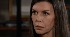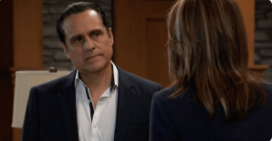 At the Quartermaine mansion, Sam (Kelly Monaco) assured Jason (Steve Burton) that Shiloh (Coby Ryan McLaughlin) didn’t know Jason was the one who broke in. Jason told Sam about how Shiloh switched the pledges with blank pieces of paper but said she (Sam) was out of it. Jason reasoned that even if they couldn’t get Kristina’s pledge back there was no way Sonny would ever be convicted of a crime without evidence. Kristina (Lexi Ainsworth) asked Alexis (Nancy Grahan) how much freedom she’d have living there. Alexis assured her daughter she was a prisoner and she trusted her to make the right decision. But urged her to stay away from Shiloh. At Charlie’s Pub, Kim (Tamara Braun) thanked Julian (William deVry) for the way he’s taken care of since Oscar’s (Garren Stitt) passing. Willow (Katelyn MacMullen) told Chase (Josh Swickward) her fear Shiloh would find out about Wiley. Meanwhile at the DOD house, Shiloh performed a relaxation exercise on Brad (Parry Shen) who told him Wiley’s birth mother has been giving him trouble. Shiloh suggested Brad bring Wiley’s birth mother to DOD. Kim arrived and Brad left. She thanked Shiloh for forwarding the emails and letters from the DOD members. Kim then asked about Oscar’s time in the house. Shiloh shared a memory of how a full course meal at DOD turned into a potluck dinner due to Oscar’s concern the homeless didn’t eat as well. Shiloh then talked about Drew (Billy Miller) sharing stories of the beautiful woman he knew in San Diego and asked whether Drew had sent him anything. Did Drew have something evidence against Shiloh that Archer was worried he had given to Kim? Robert (Tristan Rogers) suggested to Anna (Finola Hughes) that he’d help her prove “Henrik” was Alex’s (also Hughes) son. He contacted Frisco Jones (Jack Wagner) at the WSB and Frisco gave him information on Alex’s former husband All My Children’s Dimtri Marick (Michael Nader). After Anna and Robert were gone, Finn (Michael Easton) left a voicemail for Scorpio demanding his engagement ring from Anna back. Mike (Max Gail) forgot Michael’s (Chad Duell) son died and asked Sonny (Maurice Benard) to promise to remember Courtney for him when Corbin forgets his daughter. Chase suggested that Willow contact her lawyer to find out her legal rights if Shiloh discovered Wiley was his son and attempted to sue for custody. Willow left a voicemail message for Diane (Carolyn Hennesey). Lucas questioned Julian about whether he knew what was bothering Brad. While Sonny talked with Robert Scorpio about Dante (Dominic Zamprogna) outside of Kelly’s, Mike found Finn’s engagement ring for Anna that Robert had left on the counter. Knowing that Kristina would feel guilty about betraying someone she loved if they didn’t get her pledge back, Sam told Jason her plan to allow Shiloh to drug and attempt to have sex with her and to get it on tape as evidence. Shiloh was surprised when Kristina returned to DOD. Kristina asked Shiloh for her pledge back.