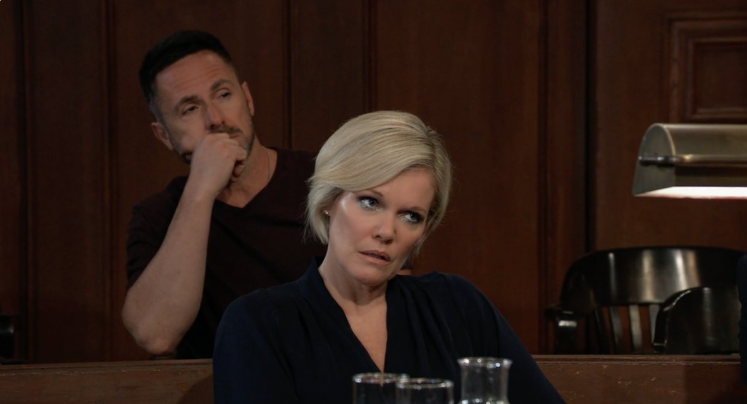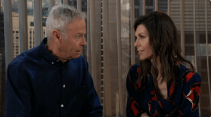 Sam assured Julian she was willing to do anything to keep Wiley safe from Shiloh even if it meant working with him (Julian). Jason (Steve Burton) brought Danny home. Danny thanked his grandfather for his birthday gift. After Julian left the penthouse and Danny the room, Sam told Jason about Shiloh being Wiley’s father. She then asked Jason when he was coming home. Scott (Kin Shriner) was glad Julian talked Ava (Maura West) into pleading not guilty. He wondered if he should pursue a temporary insanity defense or self defense, which would be hard with three cops as witnesses. Jordan (Briana Henry) told Kevin (also Lindstrom) and Laura (Genie Francis) she can’t believe Ryan Chamberlain could be her only hope to live, adding it creeped her out she could have a piece of Ryan in her body. Laura reminded it was only tissue, but Jordan needed it to survive. At first he told Curtis (Donnell Turner) he’d see Jordan, the woman who wanted him behind bars, in Hell before giving her his kidney, but then Ryan said he’d entertain offers. Curtis couldn’t believe what Ryan wanted. Lulu (Emme Rylan) told Kevin that as her mother loved him, he’d always be a part of her (Laura) life as well as Rocco and Charlotte’s. But every time she looked at him, all she saw was his sociopath brother who tried to kill her. Kevin explained that time helps victims live with a trauma. Anna (Finola Hughes) told Robert (Tristan Rogers) that Robin invited Peter (Wes Ramsey) to Berkeley to get to know his niece and nephew. But Robert still believed Alex (also Hughes) was Peter’s mother and thought Robin should know. Maxie (Kristen Storms) asked Peter to help her convince Dante to come home as she didn’t want Lulu’s family to suffer from Falconieri being gone. Ava pled not guilty. Margaux (Elizabeth Hendrickson) had no problem with bail as Ms. Jerome wasn’t a danger to society or flight risk. It was set at $100,000. Ava was haunted by the thought her daughter called out for her and she wasn’t there. Curtis told Laura and Jordan that Ryan agreed to donate his kidney if all charges were dropped against him. Jordan refused to let Ryan get away with murder no matter what it cost. Danny called it the best birthday present when he learned Jason was moving back in and they’d be a family again. Anna told Finn she had a flight to Zurich to see Alex and learn the truth about Peter once and for all. Julian urged Ava to put Ryan out of her head. But his sister couldn’t do that. Curtis had a plan to get Ryan’s kidney and told Dr. Finn he needed his help. Ryan had a visitor: Kevin. “Hello brother. Sorry to leave you hanging” Chamberlain smirked.